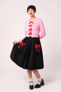 Life’s better with a bow on it, especially when wearing The Lucie Skirt. This 50’s style, black cotton skirt features large pockets on the front, accentuated with large red bow embroidery for added flair. Gathering from the waistband creates added volume, capturing every twirl you take. If you’re a bow enthusiast, style with The Lucie Cardigan pictured for a no coat needed look, or pair it with The Priscilla Top for a Spring-ready ensemble.