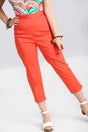 • Figure-hugging cropped cigarette trousers available in bright orange and green