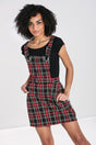 - Black and red tartan bengaline pinafore dress.