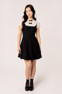The little black dress just got an adorable new look with The Alice Dress. This cute mini dress features a contrasting white mesh panel on the chest, elevated with a white frill trim around the edges, and a central slit detail that’s decorated in dainty black bows. The short puff sleeves are made in the matching white mesh, finished with elasticated cuffs for added comfort. The fitted bodice flatters the waistline before flowing into a flared skirt, perfect for any occasion.