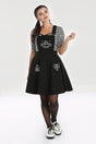- Black pinafore dress with Ouija board embroidery to bib & pockets