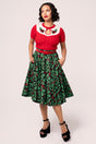 No need for boughs of holly with The Nicole Skirt. This 50’s style, printed cotton skirt features beautifully painted holly leaves and berries on a bold black base. The skirt flows from the waistband to create volume, with discreet yet practical pockets in the side seams. Pair it with one of our petticoats for even more drama.