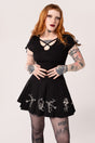 - Black pleated mini skirt with different white star sign embroidery on each pleat
