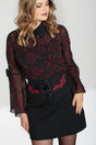 Give your everyday basics some added edge with The Tallulah Mini Skirt. This fitted black mini skirt is amplified with contrasting red snake and moon embroidery, providing a seductive shape and style. Decorated with black lace detailing and sleek silver eyelets along the front, the perfect touches of added grunge. Pointed seams run down the front and back of the skirt for a flattering silhouette, with a discreet zip fastening at the back for a sleek and secure finish. Style with our Clarice Blouse as pictured, or pair with our Tallulah Top for a matchy-matchy look.