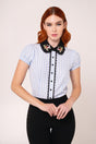 It doesn’t get more adorable than The Beatrix Blouse. This semi-fitted, blue gingham blouse features a contrasting black collar, decorated with lace trim and woodland bunny embroidery for a touch of whimsy. The button fastening is enhanced with black lace detail along the placket for a dainty detail. Style with The Beatrix Skirt pictured for an all matching ensemble, or mix it up with The Simone Trousers to bring a bit of nature to the 9-5.