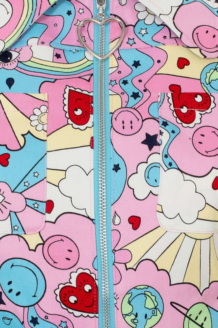 Part of Hell Bunny's collaboration with Smiley® Originals, The Loulou Jacket! Made with a sweet pink base, intricately illustrated with Smiley® motifs of hearts, stars, planets and rainbows all over. This cute, cropped jacket features a large stand up collar, two pockets on the chest in matching print, and a silver zip fastening at the front with a cute heart charm puller. Whether you’re dressing up or down, The Loulou Jacket is the perfect thing to brighten your day!