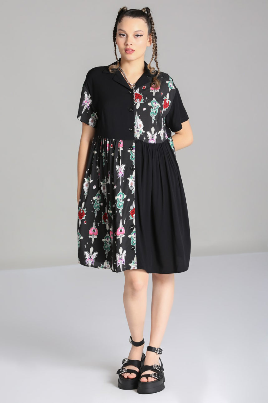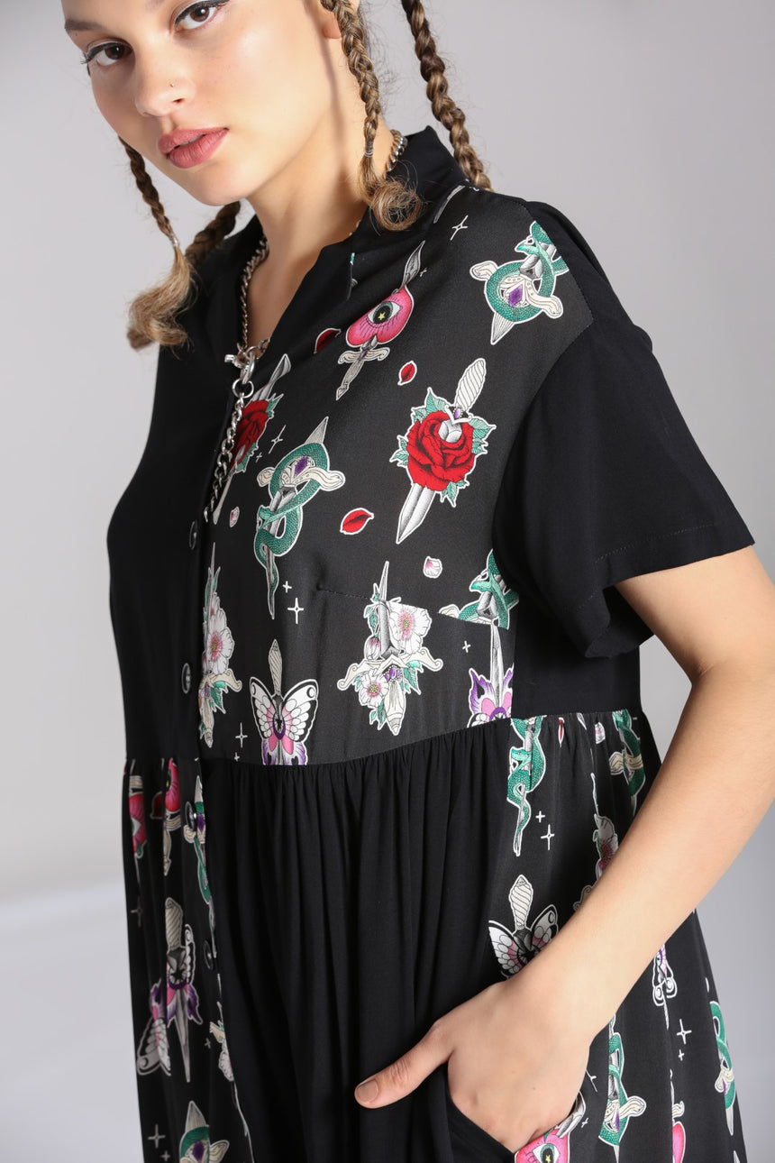 - Artwork is of tattoo style dagger and motif artwork