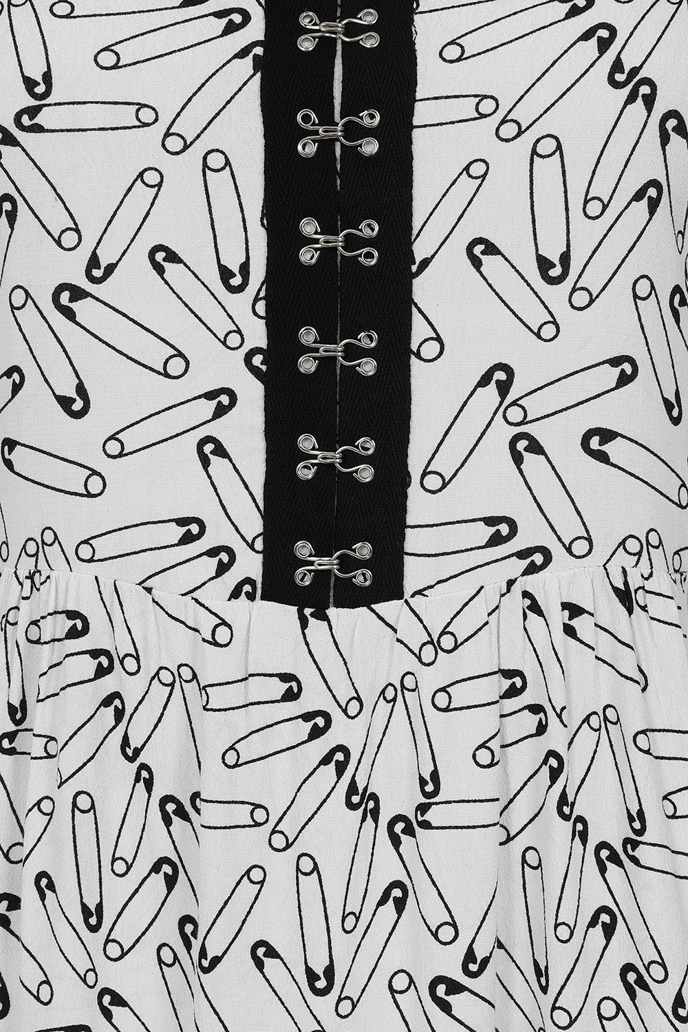 - Black or white base with safety pin graphics all over