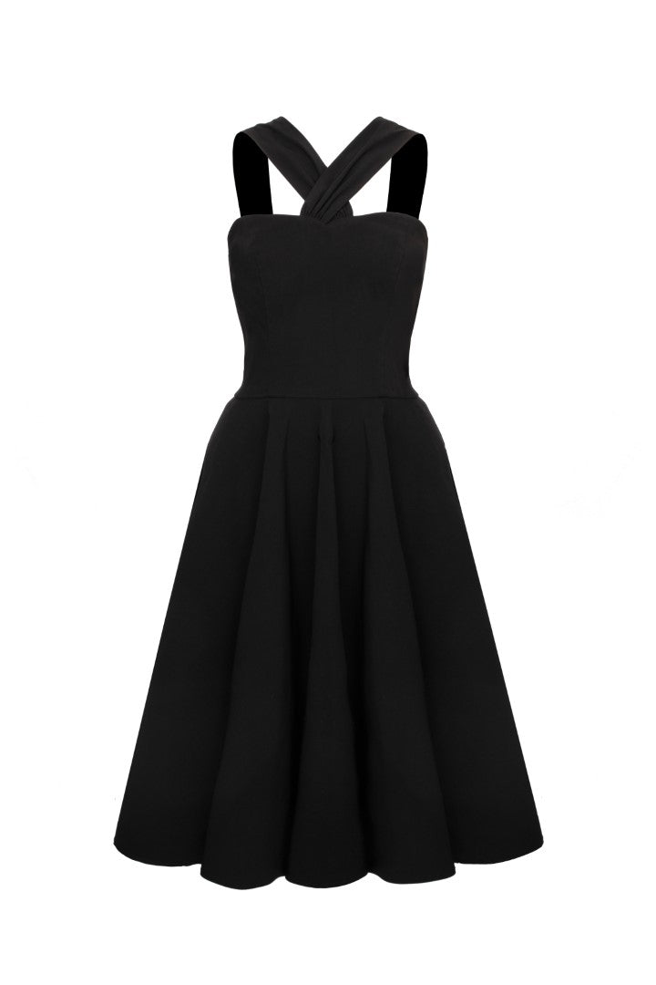 Have your Marilyn moment with The Gina Dress. This glamorous, 50’s style dress comes in timeless shades of black or red Bengaline fabric. The crossover straps adjust with buttons at the back, and gracefully cross the neck to meet a flirty sweetheart neckline. The fitted bodice features princess seams that run over the bust, before finishing at the waistline for a flattering fit. The flared skirt adds volume and twirl factor, with hidden pockets in the side seams to keep your essentials safe whilst you dance the night away.